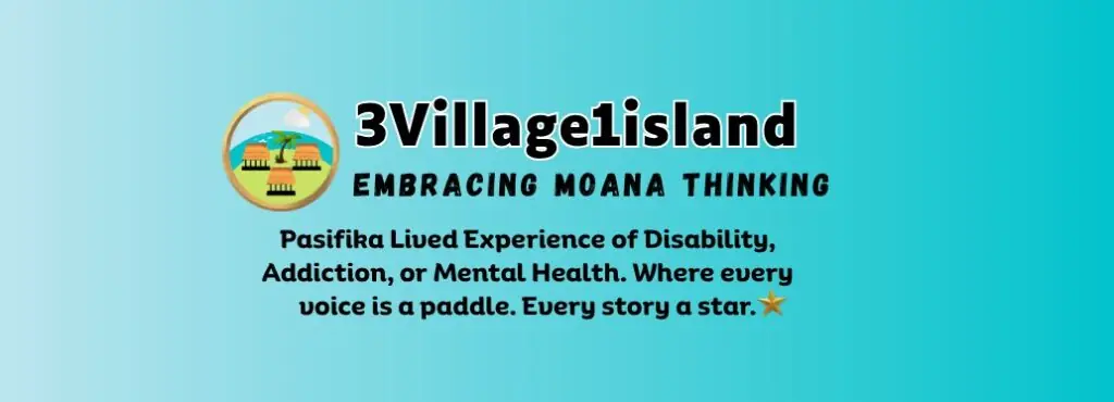 3Village1island is a Pacific lived experience collective bringing together three communities: Mana Pasifika (Disabilities), Tangata Moana Nui (Mental Health), and Drua Va Manuia (Addiction).